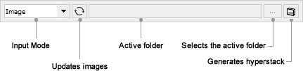 Input Mode: Allows any of the five different image input modes to be selected: Current, Image, Channel(s), Folder, Folder Channel. Five modes are available to select single images, one-dimensional stacks or multi-dimensional stacks (i.e. hyperstacks) or load them from disk.