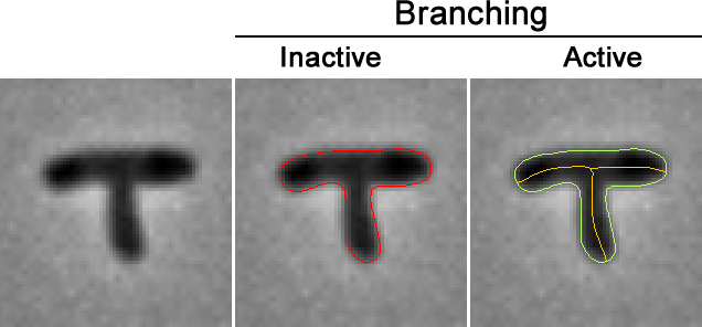 Branching: If checked, allows more than one medial axis to be detected inside a particle (see Figure 2). Default setting is unchecked.
